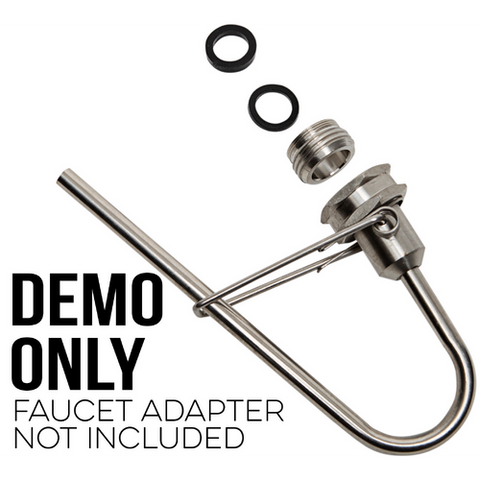 Our stainless bottle washer creates a jet-style stream that penetrates build-up in bottles or carboys. It is automatically activated when a bottle is pressed down onto the unit. Female hose thread connection.