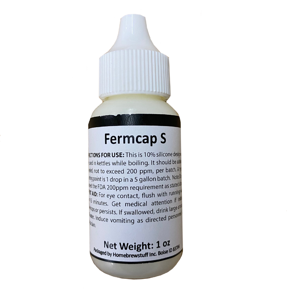 Fermcap S is an extremely effective, surface active agent that prevents foam formation during fermentation by reducing surface tension. Reduced foaming increases fermentation capacity and prevents mess, improves alpha-acid utilization and CO2 recovery, and prevents hazes due to collapsed foam. Because of the novel behavior of FermCap®, it completely adsorbs onto the yeast, vessel walls, and filter media. No FermCap® remains in the finished beer.